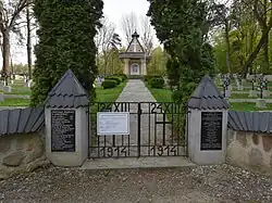 - ↑ Na podstawie tablicy informacyjnej zamontowanej przy wejściu na cmentarz