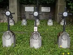 W 20 grobach pojedynczych pochowano 17 żołnierzy rosyjskich oraz 3 żołnierzy armii austro-węgierskiej. Nazwiska żołnierzy rosyjskich nie są znane. Jeden z żołnierzy austro-węgierskich walczył w 4. Pułku Cesarskich Strzelców Tyrolskich, dwóch pozostałych w 14. pułku piechoty z Linzu. Są znani z nazwiska, wszyscy polegli w maju 1915 roku, a więc podczas bitwy pod Gorlicami[3].