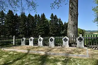 W 7 grobach zbiorowych i 24 pojedynczych pochowano tu 78 żołnierzy austro-węgierskich i 25 rosyjskich[1]. Zidentyfikowano 20 z nich, wyłącznie z armii austro-węgierskiej. Ci znani z nazwisk walczyli głównie w 16. pułku piechoty honwedu, którego obszar rekrutacji znajdował się w okolicach Bańskiej Bystrzycy. 56% żołnierzy tego pułku była narodowości węgierskiej, 41% słowackiej. Wszyscy ci żołnierze (zarówno austro-węgierscy, jak i rosyjscy) polegli w październiku 1914 roku, a więc w czasie wkroczenia na te tereny wojsk rosyjskich[4].