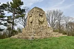 Cmentarz zaprojektowany przez Heinricha Scholza zajmuje wierzchołek wzgórza. Ma kształt nieregularnego siedmioboku. Na samym szczycie wzgórza stoi masywny, murowany z kamienia łupanego pomnik o kształcie antycznego pylonu. Na każdej z czterech jego ścian jest kamienny napis w języku niemieckim. Ogrodzenie zachowało się tylko częściowo. Od strony wejścia jest to kamienny mur z dwoma słupkami bez bramki. Na słupach wejściowych znajdują się tablice informacyjne w językach: polskim i niemieckim, przedstawiające historię bitwy o wzgórze. Na przeciwległym do wejścia końcu cmentarza są dwie duże mogiły zbiorowe, a na nich ławy pomnikowe z napisami i żeliwnymi tablicami z nazwiskami poległych. Groby żołnierzy rozlokowane są rzędami w wielu grupach umieszczonych pod różnymi kątami na stokach wzgórza. Są na nich różnego rodzaju krzyże, a na wielu tabliczki z nazwiskami poległych[3][1].