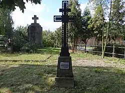 Oprócz tego na mogiłach są jeszcze metalowe ażurowe krzyże na betonowych cokołach i stele. Krzyże są trzech rodzajów: jednoramienne łacińskie, jednoramienne krzyże maltańskie i dwuramienne krzyże lotaryńskie. Stele również zwieńczone są różnymi rodzajami żeliwnych krzyży. Zarówno na cokołach krzyży, jak i na stelach są blaszane tabliczki informacyjne z nazwiskami poległych[2].