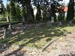 Pochowano tutaj 16 żołnierzy armii niemieckiej oraz 59 żołnierzy armii rosyjskiej[1]. Zidentyfikowano wszystkich żołnierzy niemieckich, z żołnierzy armii rosyjskiej żadnego. Wszyscy zidentyfikowani zginęli 17 grudnia 1914 r. Wśród nich są Polacy: Wozniak Josef, Wolski Wladislaus, Chrzanowsky Rudolf. Ponadto 11 lutego 1916 r. pochowano tutaj niejakiego Fiodora Rejlana[3].