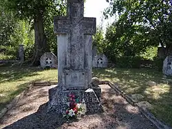 Oprócz nagrobków umieszczonych w linii ogrodzenia są jeszcze dwa takie same nagrobki po obu stronach pomnika centralnego oraz mogiła rosyjskiego oficera kapitana Alejnikowa. Jest to dwuramienny krzyż lotaryński znajdujący się za pomnikiem centralnym w tylnej linii ogrodzenia[2].