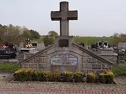 Znajduje się na cmentarzu parafialnym, naprzeciwko kościoła, po drugiej stronie drogi. Stanowi oddzielną kwaterę znajdującą się przy głównej alejce cmentarza[2].
