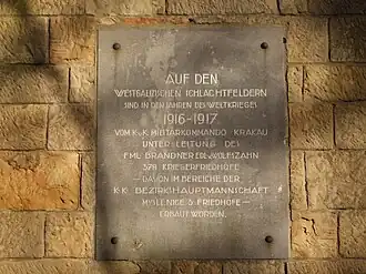 - ↑ Frodyma Roman. Cmentarze wojenne z I Wojny Światowej na Ziemi Tarnowskiej. Przewodnik Turystyczny. Krosno: Wydawnictwo „Ruthenus” 2006. ISBN 978-83-7530-000-0.