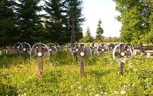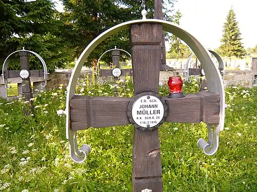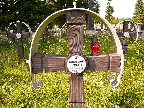 - 22 Austriaków m.in. z 1 LIR, 10 LIR, 24 LIR, 25 LIR, 53 IR, 55 IR, 59 IR, 4 Pułku Haubic Polowych Austro-Węgier, 3 Pułku Huzarów Honwedu Austro-Węgier.