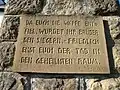| DA EUCH DIE WAFFE ENT = FIEL, WURDET IHR BRUDER DEN SIEGERN. – FRIEDLICH ENGT EUCH DER TOD IN DEM GEHEILIGHTEN RAUM | GDY BROŃ WYPADŁA WAM Z RĄK, BRAĆMI STALIŚCIE SIĘ ZWYCIĘZCÓW. ZGODNIE UTULIŁA WAS ŚMIERĆ NA TYM SKRAWKU POŚWIĘCONEJ ZIEMI Hans Hauptmann[1] |