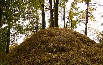 Centralna część cmentarza zajęta jest przez kopiec o wysokości około 5 m i podstawie 10 m na 10 m. Na szczycie kopca znajduje się drewniany krzyż.