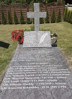 Ze względu na różne okoliczności osiem Sług Bożych ma na cmentarzu przyklasztornym grób symboliczny. Nie da się stwierdzić, gdzie spoczywają męczennice z Kętrzyna, Lidzbarka Warmińskiego, Piły oraz wywiezione w kierunku Syberii. Przy poszukiwaniach grobów ofiar terroru Armii Czerwonej Zgromadzenie Sióstr Katarzynek wspomagał Instytut Pamięci Narodowej[2].