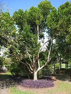 - Wiecznie zielone drzewo dorastające do 10 m wysokości. Kora ma szarawą barwę[8].