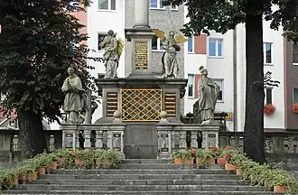 - Podstawa, postument (baza), na którym umieszczane są rzeźby lub inne dzieła sztuki. Cokołem określa się również podmurówkę ogrodzenia.