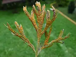 - ↑ Plant Parasites of Europe. Coleosporium tussilginis sensu lato. [dostęp 2018-09-04].