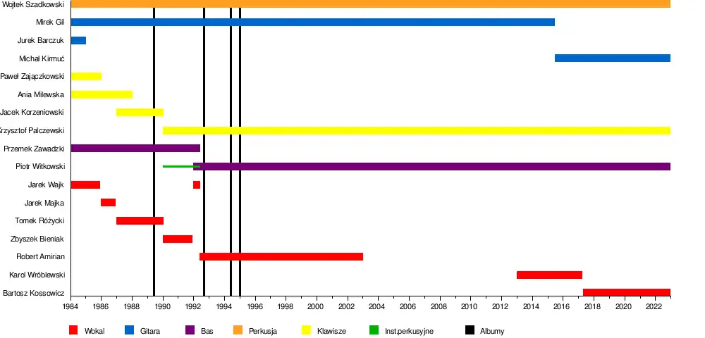 - Jacek Korzeniowski – instrumenty klawiszowe (1987–1990)