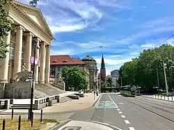 Widok na gmach z perspektywy ul. Fredry