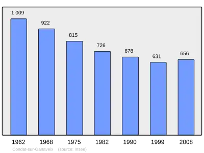 Według danych na rok 1990 gminę zamieszkiwało 678 osób, a gęstość zaludnienia wynosiła 18 osób/km² (wśród 747 gmin Limousin Condat-sur-Ganaveix plasuje się na 193. miejscu pod względem liczby ludności, natomiast pod względem powierzchni na miejscu 97.).