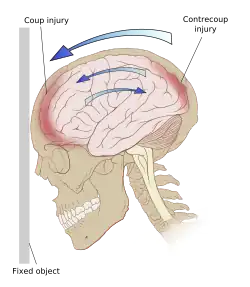 Contre coup – uraz głowy występujący po drugiej stronie względem miejsca uderzenia[1]. Uraz występujący w miejscu uderzenia głowy o obiekt określa się jako coup. Urazy coup[2] i contre coup wiążą się z wystąpieniem stłuczenia mózgu[3]. Przy urazie głowy może powstać tylko jeden z nich lub oba naraz. Uraz coup jest charakterystyczny dla uderzenia poruszającego się obiektu w nieruchomą głowę[4], podczas gdy urazy contre coup zwykle powstają kiedy poruszająca się głowa uderza w nieruchomy obiekt[1].