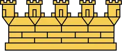 W heraldyce stosowana jako zwieńczenie tarczy herbu miejskiego, określające rangę miasta – miasta mniejsze używają korony z trzema basztami, miasta większe z czterema, stołeczne z czterema lub pięcioma.