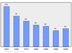 Według danych na rok 1990 gminę zamieszkiwały 52 osoby, a gęstość zaludnienia wynosiła 2 osoby/km² (wśród 1545 gmin Langwedocji-Roussillon Counozouls plasuje się na 848. miejscu pod względem liczby ludności, natomiast pod względem powierzchni na miejscu 259.).