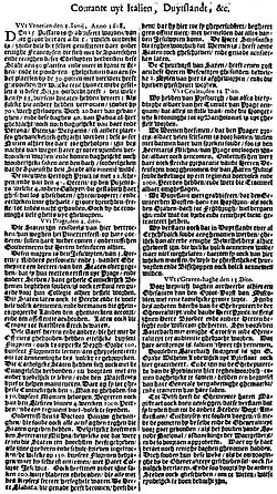 Courante uyt Italien, Duytslandt, &c. (pol.: goniec niosący wieści z Włoch, Niemiec itp.) – pierwsza codzienna gazeta w Holandii.