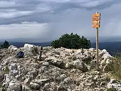 Wierzchowina szczytowa jest rozległa, skalista i mocno rozczłonkowana. Wapienne podłoże jest popękane, pocięte licznymi szczelinami i wąwozami oraz naznaczone lapiazem. Pod szczyt podchodzą luźne skupiska sosny hakowatej, krzaczaste formy jarząbu nieszpułkowego i wierzby iwy oraz zarośla malin[1].