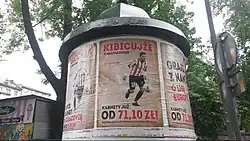 Plakat klubu piłkarskiego Cracovia z charakterystycznym dla gwary krakowskiej wyrażeniem z końcówką -że