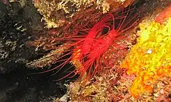 Zwierzę zamieszkuje oceany. Żyje w strefie eufotycznej, zazwyczaj przebywając na głębokości pomiędzy 3 a 50 m, gdzie dominuje światło zielone i niebieskie. Ukrywa się w szczelinach, gdzie dominuje rozproszone światło o niewielkich długościach fali[6].