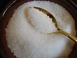 - ↑ Dane na podstawie: 15.1. „Cukier – charakterystyka towaroznawcza”. W: Danuta Kołożyn-Krajewska, Tadeusz Sikora: Towaroznawstwo żywności. Wyd. VII. Wydawnictwa Szkolne i Pedagogiczne Spółka Akcyjna, 2007, s. 184-185. ISBN 978-83-02-09150-6..
