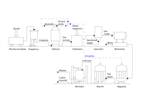 - ↑ Schemat produkcji cukru. [dostęp 2014-03-10]. [zarchiwizowane z tego adresu (2014-03-10)].