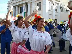 Strój mężczyzn to zwykle białe spodnie i koszula, czerwona chusta w pasie, kapelusz (sombrero vueltiao) i torba zarzucona na ukos. Kobiety tańczą w polleras - długich, ozdobnych spódnicach z falbanami, obcisłym gorsecie w kolorze spódnicy, a we włosy wpinają kwiat cayena (symbol miasta Barranquilla). Inne elementy stroju to falbaniaste rękawki na wysokości łokcia oraz naszyjniki i kolczyki a także wianuszek świec, które trzymają w dłoni[1].