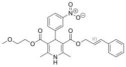2,6-dimetylo-4-(3-nitrofenylo)-1,4-dihydropirydyno-3,5-dikarboksylan 3-(2-metoksyetylu) 5-[(E)-3-fenyloprop-2-enylu] |
