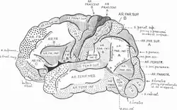 - ↑ Elliot Smith G. A new topographical survey of the human cerebral cortex, being an account of the distribution of the anatomically distinct cortical areas and their relationship to the cerebral sulci. Journal of Anatomy and Physiology (Londyn) 41, 237-254 (1907)