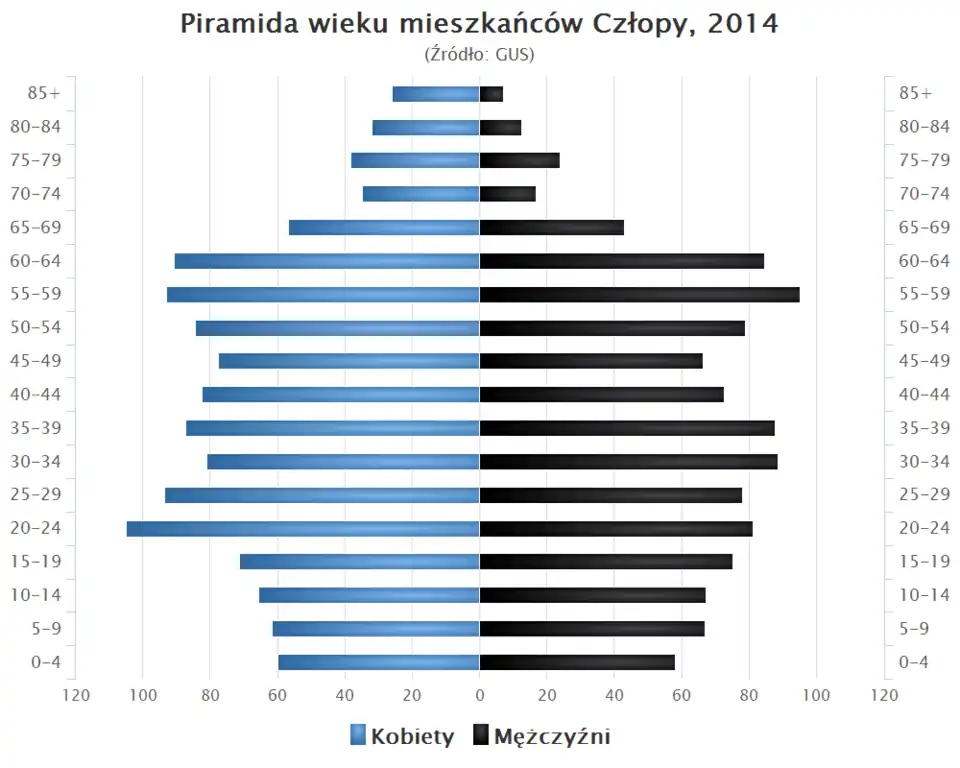 - Piramida wieku mieszkańców Człopy w 2014 roku[20].