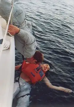 W żeglarstwie jest to nazwa złożonego manewru podejścia jachtem do człowieka, który znalazł się za burtą. Umiejętność wykonania tego manewru wymagana jest do zdobycia stopnia żeglarskiego. W zależności od: akwenu, rodzaju jachtu, kursu względem wiatru i innych czynników - istnieje wiele sposobów wykonania tego manewru: ósemka sztagowa, manewr rufowy, manewr monachijski i wiele innych.