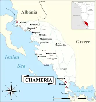 Jego granicę zachodnią stanowi Morze Jońskie, na północy rzeka Pavël (Pavlle), na południu rzeka Acheron, wschodnia granica Czamerii przebiega wzdłuż pasma gór Paramithias i Tsamanta.