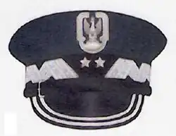 Od stopnia chorążego na czapkach garnizonowych marynarki umieszcza się oznaczenia stopni na pasku skórzanym[9].