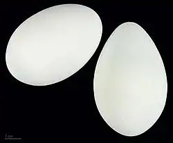 Jaja: Jaja składane są w liczbie 1–6 (wyjątkowo do 10) w odstępach dwudniowych, czasami co 3–4 dni[6]. Mają błękitną barwę[9], wymiary 57–61×41–43 mm[21].