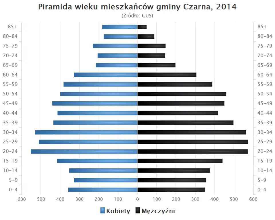 - Piramida wieku mieszkańców gminy Czarna w 2014 roku[3].