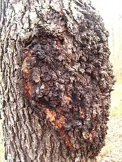 Nieleczona choroba pogarsza stan rośliny z każdym rokiem. Kiedy narośl całkowicie otacza gałąź, liście żółkną, więdną i obumierają. Infekcje są rzadsze na głównych konarach lub pniu, ale mogą tam wystąpić, co ma większy wpływ na zdrowie drzew. Starsze narośle mogą zmienić kolor na biały lub różowy późnym latem, ponieważ są one infekowane przez grzyba Trichothecium roseum, a wiele z nich jest atakowanych przez owady[3].