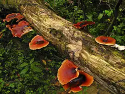 Saprotrof wywołujący białą zgniliznę drewna[5].