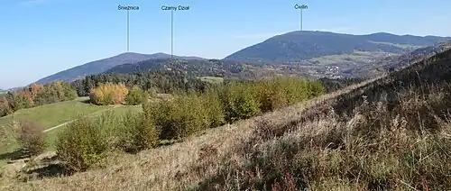 ![]() U góry Lubogoszcz, pod nim Czarny Dział, w dolinie miejscowości Wilczyce i Łostówka | |
