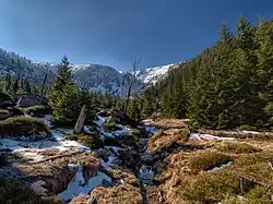 - ↑ Migoń P. Karkonosze – rozwój rzeźby terenu. W: Mierzejewski P. (red.), 2005: Karkonosze. Wyd. Uniwersytetu Wrocławskiego, strona 340.
