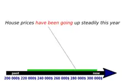 - czasem teraźniejszo-przeszłym[2] (Present Perfect), zwanym również „teraźniejszym dokonanym”, który ukazuje teraźniejsze następstwa zdarzenia, które już miało miejsce
