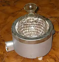 Element grzejny jest zazwyczaj umieszczany wewnątrz metalowej lub wykonanej z tworzywa sztucznego obudowy. Temperaturę generowaną za pomocą tego elementu reguluje się przy pomocy autotransformatora. Bardziej nowoczesne wersje czasz mają autotransformator umieszczony w obudowie a jego pokrętło jest wyskalowane w np. stopniach Celsjusza. Starsze wersje czasz wymagają stosowania zewnętrznego autotransformatora.