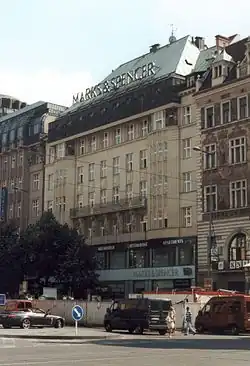 - ↑ W czasie aksamitnej rewolucji z balkonu siedziby „Melantrichu” przywódcy opozycji czechosłowackiej, w tym Václav Havel, wygłaszali swoje przemówienia do narodu
