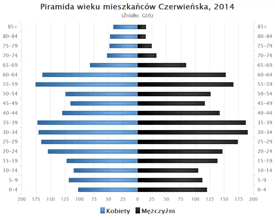 - Piramida wieku mieszkańców Czerwieńska w 2014 roku[10].
