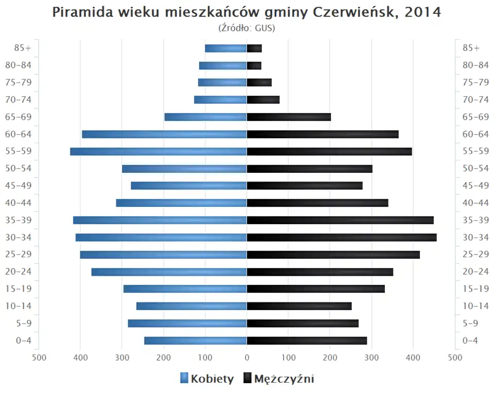 - Piramida wieku mieszkańców gminy Czerwieńsk w 2014 roku[1].