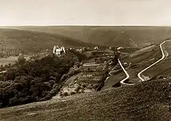 Nazwa pochodzić ma od występującego tam czerwonego piaskowca