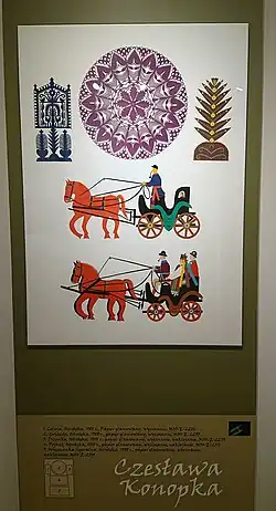 - 1 2 3 4 5 6 7 8 9 10 11 12 Jadwiga Nowicka, Czesław Parzych, Pierwsza Dama Polskiej Wycinanki. Czesława Konopka (1925–1993), [w:] Mirosław Grzyb (red.), Kurpie. Najważniejsi w dziejach, Ostrołęka: Związek Kurpiów, 2014, s. 311–316, ISBN 978-83-940655-2-2, OCLC 948874677 [dostęp 2022-03-19].