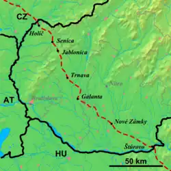 Kupcy rozpoczynając swą podróż w Pradze, docierali na początku do Kolína, dalej kierowali się na Pardubice, Litomyśl i Brno. Granicę morawsko-węgierską droga przekraczała w pobliżu miejscowości Kátov, gdzie znajdował się bród na rzece Morawie. Następnie podróżni podążali do Trnawy, korzystając z górskiego przesmyku w Małych Karpatach w rejonie wsi Prievaly. W okolicach dzisiejszej miejscowości Sereď znajdował się kolejny bród, tym razem na rzece Wag. Kolejny odcinek biegł przez Galantę, Nowe Zamki, bród na Žitavie, a wreszcie w Ostrzyhomiu przekraczał Dunaj.