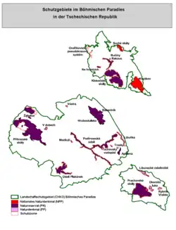 Jednocześnie stanowi on najstarszy obszar chronionego krajobrazu w Czechach (Chráněná krajinná oblast Český ráj, w skrócie CHKO Český ráj), utworzony w 1955 na powierzchni 95 km² (w 2002 jego powierzchnię zwiększono do obecnych 181,5 km²). Ponadto, w 2005 niespełna 700 km² terenu Czeskiego Raju oznaczono jako geopark UNESCO.